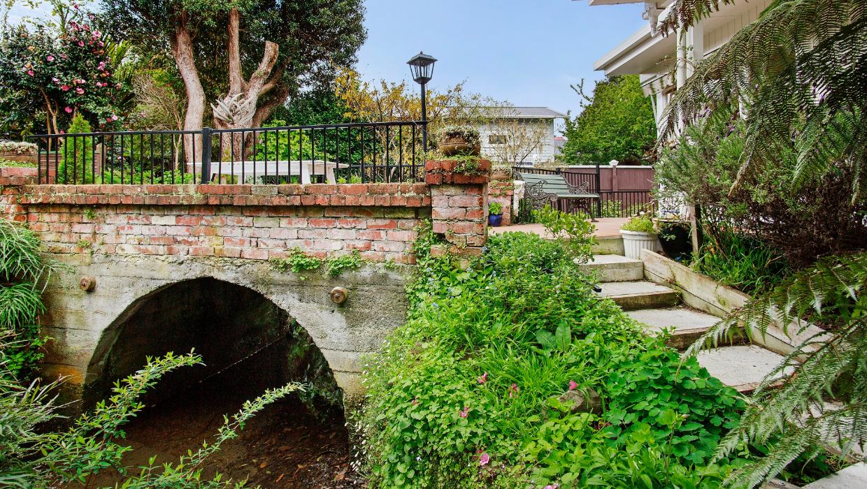 Unique Lower Hutt Bungalow Features Private Island and Bridge