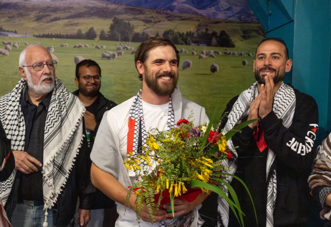 Upon returning to Christchurch on Monday, Alexander was greeted by supporters who applauded his arrival. He emphasized the need to focus on the humanitarian crisis in Gaza rather than on the activists themselves. “We are not the story, we’re just activists. As one of our comrades said, we are the finger pointing at Gaza,” he stated. Alexander criticized the New Zealand government for its failure to recognize Palestine as a state, calling it shameful.