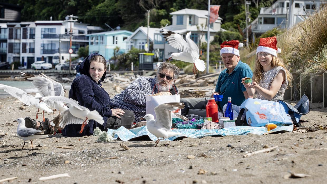 On the beach, Abbie Kate Brown and her family embraced the gusty winds for a Christmas Day picnic. This year marked the continuation of their tradition, which began after enjoying an Italian seafood dinner the previous Christmas Eve. With coffee and Christmas crackers spread out on their blanket, they welcomed the local seagulls eager for a share of their festive feast.